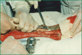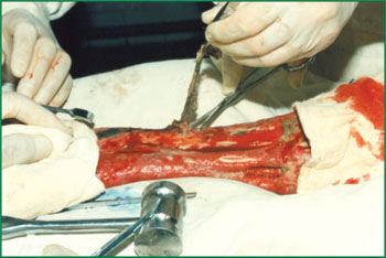 2、 將骨組織表面的壞死組織清除。