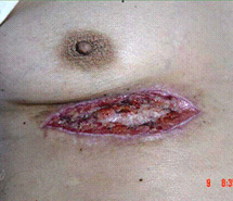 單純的手術(shù)治療切除癌灶后,應(yīng)用MEBO治療創(chuàng)面,創(chuàng)面出血少,病人無(wú)痛苦,并可避免擴(kuò)大根治性手術(shù)的再損傷,通過(guò)換藥,無(wú)損傷的使創(chuàng)面愈合,并且可無(wú)損傷的抑制殘留腫瘤組織的生長(zhǎng),該類病人最終都是以炎性肉芽組織的形式愈合。但對(duì)于腫瘤的復(fù)發(fā)、再發(fā)、轉(zhuǎn)移是否有抑制作用,還需長(zhǎng)期病例隨訪及進(jìn)一步研究。