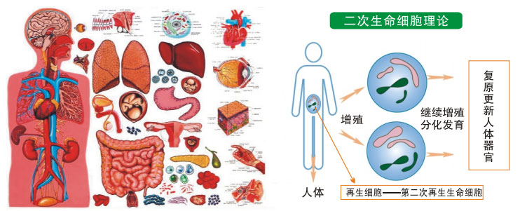這個(gè)基礎(chǔ)就是人有二次再生生命,從精子、卵子融合為一個(gè)細(xì)胞,在生命的條件下發(fā)育成人體,這個(gè)受精卵發(fā)育出的細(xì)胞就一直延續(xù)到人的去世,這個(gè)生命就是細(xì)胞的第一次生命,那人的第二次再生生命從哪里來?不可能是精子與卵子再次結(jié)合形成,那樣就成了另一個(gè)人了。即使克隆人,那也不是原來的他,也是另一個(gè)人。我們這些年一直在探索,人的第二次再生生命到底有沒有,若有的話,到底在哪里?原來只是想像,是個(gè)夢(mèng)想,可我在實(shí)踐中發(fā)現(xiàn),就是當(dāng)年在治療燒傷的時(shí)候,讓那些燒傷病人失去的皮膚重新長(zhǎng)出來的細(xì)胞。20世紀(jì)80年代我就提出了人體可以再生的理論,雖然當(dāng)時(shí)還只限于皮膚,可還是誰(shuí)都不信,有些人還罵我是大騙子,而且還一直罵了那么多年,到了2000年,都開始改口了,事實(shí)證明他們錯(cuò)了??晌覀兒茉缇鸵呀?jīng)開始了皮膚再生的規(guī)律延伸到其他器官再生的研究,當(dāng)時(shí)我就想皮膚再生了,其他器官能不能再生?我按照當(dāng)時(shí)總結(jié)的規(guī)律,先落實(shí)到胃腸再生的研究上。因?yàn)楫?dāng)時(shí)考慮到人的胃腸和皮膚不是同一個(gè)胚胎層發(fā)育來的,胃腸再生成功,就意味著這個(gè)胚胎層發(fā)育的器官也有可能再生,于是我就開始研究,參考皮膚研究的經(jīng)驗(yàn),從細(xì)胞層面來研究胃腸粘膜,最后實(shí)現(xiàn)了人的胃腸粘膜的再生,后來又實(shí)現(xiàn)了衰老的胃腸半年就恢復(fù)成較年輕的的結(jié)果。這個(gè)胃腸再生的成功,比我們燒傷皮膚再生、斷指再生意義還要大。這就是說已經(jīng)把人的整個(gè)內(nèi)部器官代表了,胃腸粘膜的全部更新代表著人的內(nèi)臟器官的全部更新。我們從90年代初就開始琢磨胃腸再生的程序,1997年完成了第一步。2000年公布了我們的研究成果。2002年又從胃腸擴(kuò)展到55個(gè)組織器官。2002年我們就搞了個(gè)“生命科學(xué)大爆炸”,當(dāng)時(shí)一天就有3000萬(wàn)條新聞,我們又繼續(xù)堅(jiān)持研究了5年,實(shí)現(xiàn)了所有器官的更新。我們之所以很快成功就是因?yàn)檎业搅松偕茖W(xué)的門?,F(xiàn)在人體綜合器官原位再生已經(jīng)完成,看上去,我們的完成顯得這么簡(jiǎn)單,這么順利。 顯得很簡(jiǎn)單的原因就在于我們找到了第二次再生生命細(xì)胞,這個(gè)細(xì)胞就是在精子和卵子融合發(fā)育成人體的過程中,在每一步分裂的過程中留下來的那個(gè)具有再生潛能的拷貝細(xì)胞,可以看作是第一次生命細(xì)胞的同卵雙胞胎弟弟。這個(gè)細(xì)胞在低等動(dòng)物沒有人發(fā)現(xiàn),因低等動(dòng)物沒有進(jìn)化完全,可以再生。后來認(rèn)為高等動(dòng)物因?yàn)榘l(fā)育進(jìn)化完全了,沒有再生的基礎(chǔ),一般不再具有較強(qiáng)的再生能力,只能有個(gè)別簡(jiǎn)單的部位可以再生,如皮膚表皮更新一下,毛囊再生毛發(fā)等,其他就沒有了。但我們?cè)趯?shí)踐中實(shí)現(xiàn)了皮膚全部再生,按說這是不可能的,但到底是通過什么機(jī)制再生的呢?我們就在皮膚上找,最后發(fā)現(xiàn)了角蛋白19型干細(xì)胞,這個(gè)細(xì)胞是皮膚的祖宗細(xì)胞,是胚胎干細(xì)胞,可胚胎干細(xì)胞明明在發(fā)育結(jié)束后已經(jīng)沒有了,怎么又會(huì)出現(xiàn)呢?所以我就繼續(xù)尋找發(fā)育出這個(gè)細(xì)胞的細(xì)胞是哪一個(gè)?按胚胎學(xué)的標(biāo)準(zhǔn),這個(gè)細(xì)胞應(yīng)該來源于卵胚,但現(xiàn)實(shí)不是卵胚事實(shí)證明這是不可能的,我們就排除了這個(gè)想法,接著尋找,后來發(fā)現(xiàn)有些細(xì)胞確實(shí)發(fā)生了變化,發(fā)育出了這種細(xì)胞,我們最早就把發(fā)現(xiàn)的這種細(xì)胞叫潛能再生細(xì)胞。繼續(xù)研究,發(fā)現(xiàn)組織中不是所有細(xì)胞都具有這種再生功能。但這種細(xì)胞又不是干細(xì)胞,這樣我們就把這種細(xì)胞定性到那個(gè)發(fā)育過程中留下的具有再生潛能的細(xì)胞了,或者認(rèn)為這個(gè)細(xì)胞就是由組織細(xì)胞直接變來的。