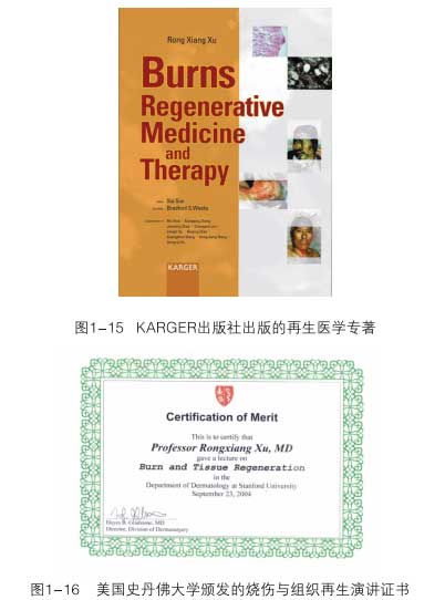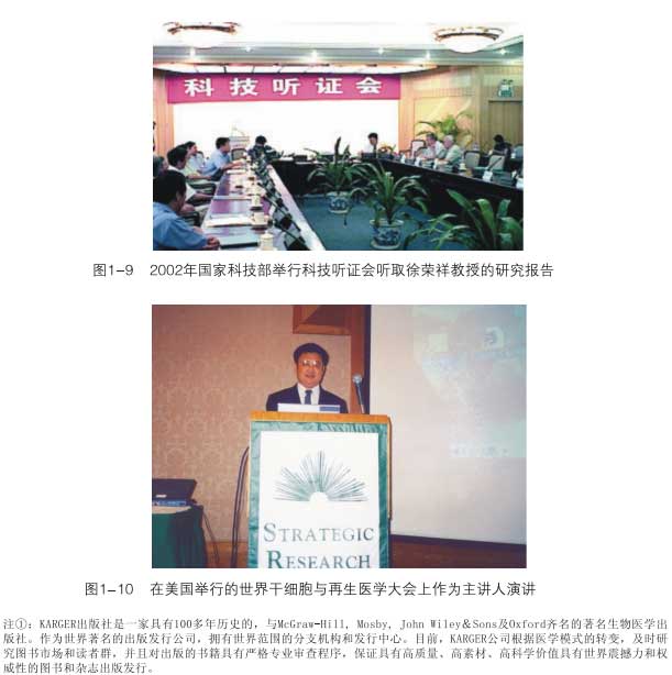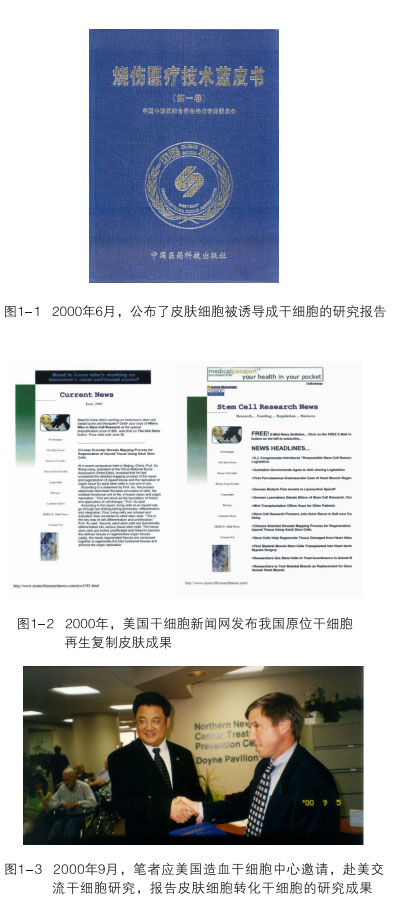 雖然我們在國際國內(nèi)學(xué)術(shù)會議上反復(fù)地講解身體內(nèi)由體細(xì)胞轉(zhuǎn)化為干細(xì)胞的實(shí)際規(guī)律,但世界胚胎干細(xì)胞研究的狂潮席卷生命科學(xué)界,各大學(xué)和醫(yī)院都設(shè)立胚胎干細(xì)胞研究室,都在按同一個(gè)夢想奮進(jìn)。于是,我們又在2002年8月,搞了一個(gè)生命科學(xué)大爆炸新聞發(fā)布會,宣布已成功地實(shí)現(xiàn)了體細(xì)胞轉(zhuǎn)化為干細(xì)胞(潛能再生細(xì)胞)再克隆器官的全過程,公布了克隆出的組織器官實(shí)物,并宣稱5年后完成人類組織器官的全部復(fù)制。國家科技部也組織院士進(jìn)行了科學(xué)聽證會議,隨即,美國舉行的世界干細(xì)胞與再生醫(yī)學(xué)大會和在新加坡舉行的干細(xì)胞大會特約我做嘉賓作如何用體細(xì)胞克隆組織器官、和臨床如何用于治療創(chuàng)傷和胃腸潰瘍疾病的專題演講。2004年,世界三大醫(yī)學(xué)文獻(xiàn)出版社之一的瑞士KARGER出版社①正式出版了我的再生醫(yī)學(xué)英文專著《燒傷再生醫(yī)學(xué)與療法》,封底書評介紹,這是一本用臨床應(yīng)用實(shí)踐陳述普通細(xì)胞原位再生皮膚器官過程的書,對細(xì)胞生物學(xué)、干細(xì)胞研究、免疫學(xué)研究等,都有著極其重要的價(jià)值。出版社為了對大家的科學(xué)研究產(chǎn)生有利的作用,在出版社的網(wǎng)站上寫道:這是一本“革命性的和令人驚奇的”著作。這樣的呼吁,在世界范圍內(nèi)產(chǎn)生了較大的影響,比如德國、英國、美國等國知名的生命科學(xué)家專程來華與我們交流干細(xì)胞的研究,瑞典科學(xué)委員會委托國家電視臺專程來華采訪。美國史丹佛大學(xué)特約去大學(xué)作專題學(xué)術(shù)報(bào)告,美國哈佛大學(xué)皮膚學(xué)教授們專程到家里進(jìn)行學(xué)術(shù)交流。
