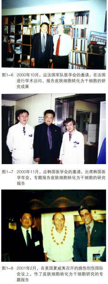 21世紀(jì)前葉,美國科學(xué)雜志將胚胎干細(xì)胞研究評為1999年度世界十大科學(xué)成就之首,但惹來了生命倫理的爭論。而我們的研究早已破解了皮膚器官再生的秘密,則在1997年培訓(xùn)全國的高級職稱醫(yī)生如何再生復(fù)原大面積深度燒傷后的皮膚。當(dāng)看到幾乎是全世界的生命科學(xué)家都掀起了胚胎干細(xì)胞研究的熱潮時(shí),我們的心情同樣是激動,但這種激動并不是歡呼胚胎干細(xì)胞的研究,而是為這種熱潮感到擔(dān)心,因我們的研究所得到的干細(xì)胞規(guī)律并不是他們想象的那樣,作為生命科學(xué)的研究者都應(yīng)該懂得,細(xì)胞生命規(guī)律無論是胚胎來的干細(xì)胞,還是成體組織來的干細(xì)胞,其生命規(guī)律是一致的。不應(yīng)該再出現(xiàn)別的規(guī)律。究竟是誰對誰錯(cuò)?我們肯定的回答,我們的發(fā)現(xiàn)不會錯(cuò)!因?yàn)槲覀兪菑囊呀?jīng)獲得的器官破解的干細(xì)胞生命規(guī)律,是已經(jīng)完成和實(shí)現(xiàn)的。而胚胎干細(xì)胞想象的克隆器官的規(guī)律只是幻想出來的,還沒有實(shí)踐證實(shí)。于是,為了給世界熱衷于胚胎干細(xì)胞研究的生命科學(xué)家提個(gè)醒,我們于2000年6月正式出版了著作,公布了皮膚組織細(xì)胞可轉(zhuǎn)化為干細(xì)胞再生器官的臨床結(jié)果和生命規(guī)律的秘密。并舉行了中外新聞發(fā)布會,為了讓大家深刻地明白,我們又借助《科技日報(bào)》,進(jìn)行了幾萬字的破解體細(xì)胞轉(zhuǎn)干細(xì)胞再生器官探秘過程的曝光報(bào)道。這是人類發(fā)明體細(xì)胞轉(zhuǎn)化為干細(xì)胞、原位再生復(fù)原組織和器官科學(xué)體系的科學(xué)突破起始點(diǎn)。相繼于2001年舉行了胃腸組織細(xì)胞克隆胃腸器官獲得成功的中外新聞發(fā)布會,重復(fù)了皮膚細(xì)胞轉(zhuǎn)化為干細(xì)胞的科學(xué)規(guī)律。在完成系統(tǒng)的研究后,我們申報(bào)了這一科學(xué)平臺的美國、歐洲、中國專利,現(xiàn)已獲得專利權(quán)。(附一組在國際上傳播體細(xì)胞轉(zhuǎn)化形成干細(xì)胞成果足跡的照片)