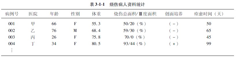 表311說(shuō)明,表頭項(xiàng)目為變量,表中數(shù)據(jù)為資料,系變量的觀察值構(gòu)成了資料或數(shù)據(jù)??梢赃@么理解,總體就是我們要研究的某事物的總體(全部),構(gòu)成這個(gè)總體的每個(gè)個(gè)體稱(chēng)為變量,如不同深度的燒傷創(chuàng)面就是其中的變量之一,因?yàn)椴∪说臒齻娣e、患病年齡及性別不會(huì)完全相同,況且樣本是從總體中抽取的。所以從總體中抽取的這些可變因素僅是總體中的某一部分,只有把這些數(shù)據(jù)予以統(tǒng)計(jì),方可得出能夠代表總體的結(jié)果。
