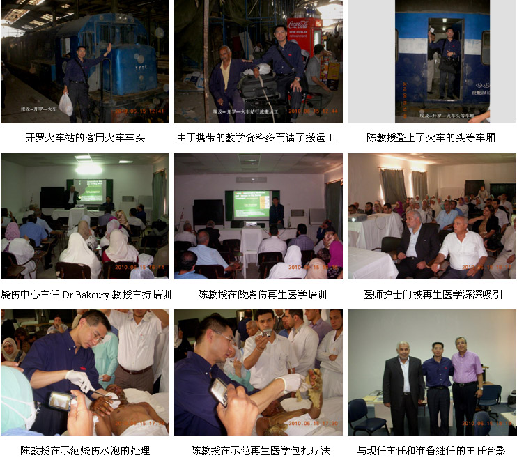 3、6月15日一大早,陳教授一行便登上開(kāi)往亞歷山大市的火車(chē),經(jīng)過(guò)4個(gè)小時(shí)的旅途,上午11時(shí)順利到達(dá)了亞歷山大市。由于這次的行程安排的非常緊湊,下了火車(chē)后陳教授顧不上休息,便直接趕往亞歷山大大學(xué)醫(yī)院的燒傷中心進(jìn)行臨床培訓(xùn)和學(xué)術(shù)交流,該院有病床3700張,是當(dāng)?shù)刈畲蟮尼t(yī)院,其中燒傷中心有70張病床,該中心是埃及最大的燒傷中心。當(dāng)陳教授趕到燒傷中心時(shí),燒傷中心的主任、教授和醫(yī)師護(hù)士們已等候多時(shí),陳教授在主任辦公室和主任及骨干專(zhuān)家進(jìn)行了簡(jiǎn)短的交流后,馬上展開(kāi)培訓(xùn)和臨床示范活動(dòng)。培訓(xùn)會(huì)在燒傷中心的示教室進(jìn)行,50多名來(lái)自該院燒傷中心和外科的醫(yī)師、護(hù)士參加了培訓(xùn)示范會(huì),燒傷中心的主任Dr. Mohamed Bakoury 主持會(huì)議,陳教授以“Burns Rgenerative Medicine and Therapy in Big Burn treatment”(燒傷再生醫(yī)學(xué)與療法在大面積燒傷的治療)為題,對(duì)燒傷中心的醫(yī)護(hù)人員進(jìn)行了較系統(tǒng)的燒傷再生醫(yī)學(xué)培訓(xùn)。培訓(xùn)結(jié)束后,剛好來(lái)了一位急診燒傷患者,TBSA=15%(淺II度---深I(lǐng)I度),陳教授利用該新來(lái)的病例,認(rèn)真地詢(xún)問(wèn)病史、進(jìn)行病情分析、面積估計(jì)、深度判斷和做出臨床診斷,然后提出了全面的全身系統(tǒng)治療和創(chuàng)面治療方案,大家對(duì)陳教授嚴(yán)謹(jǐn)、認(rèn)真、正確診斷的臨床工作作風(fēng)十分佩服。隨后,陳教授在患者的不同部位,分別講解、示范了燒傷再生醫(yī)學(xué)的暴露療法、半暴露療法和包扎療法,患者接受規(guī)范治療后感到創(chuàng)面不痛了,醫(yī)師護(hù)士們覺(jué)得很神奇,而且該療法的換藥技術(shù)很好掌握,大家馬上喜歡上了燒傷再生醫(yī)學(xué)與療法。培訓(xùn)會(huì)后,陳教授和燒傷中心的主任和骨干醫(yī)師們?cè)敿?xì)討論了下階段應(yīng)用燒傷再生醫(yī)學(xué)與療法治療大面積深度燒傷,以及開(kāi)展臨床應(yīng)用研究的計(jì)劃,相信通過(guò)這次的培訓(xùn)和交流,一定會(huì)使該燒傷中心的燒傷治療技術(shù)進(jìn)入到全新的燒傷再生醫(yī)學(xué)領(lǐng)域。