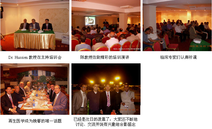 4、6月15日晚上11點(diǎn),亞歷山大市市級(jí)再生醫(yī)學(xué)培訓(xùn)會(huì)在亞歷山大市的濱海酒店的會(huì)議室成功召開(kāi)。來(lái)自全市30多家醫(yī)院的60多名燒傷整形及外科醫(yī)師參加了培訓(xùn)會(huì),亞歷山大大學(xué)醫(yī)院的Dr. Hussien S. Abulhassan教授主持了這次培訓(xùn)會(huì),陳永翀教授應(yīng)邀以“Burns Rgenerative Medicine and Therapy in Burns, Wounds and Ulcers treatment”(燒傷再生醫(yī)學(xué)與療法在燒傷、創(chuàng)傷和潰瘍的治療)為題進(jìn)行了精彩的培訓(xùn)演講,培訓(xùn)內(nèi)容新穎、易懂,大家很興奮也很激動(dòng),培訓(xùn)和交流活動(dòng)一直持續(xù)到凌晨1點(diǎn),效果理想。