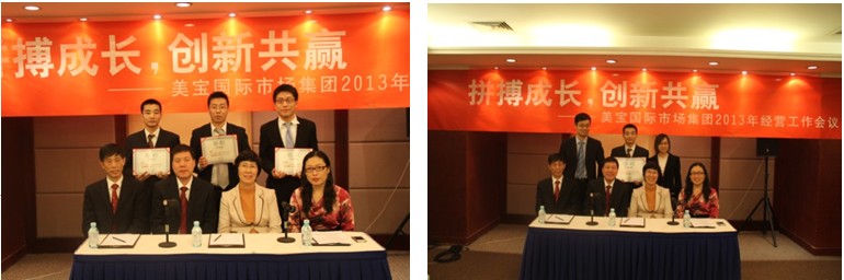 2013年1月7日國際市場集團分會場繼續(xù)進行大會議程,經(jīng)過嚴格績效考核和綜合測評,對2012年度表現(xiàn)突出的員工予以表彰。下午13時,美寶國際市場集團總裁孫霞陪同大集團經(jīng)營班子:集團總裁楊智斌、副總裁張倩、陳寶琪出席了國際市場集團“杰出貢獻獎”頒獎儀式。