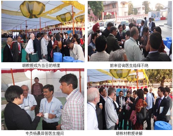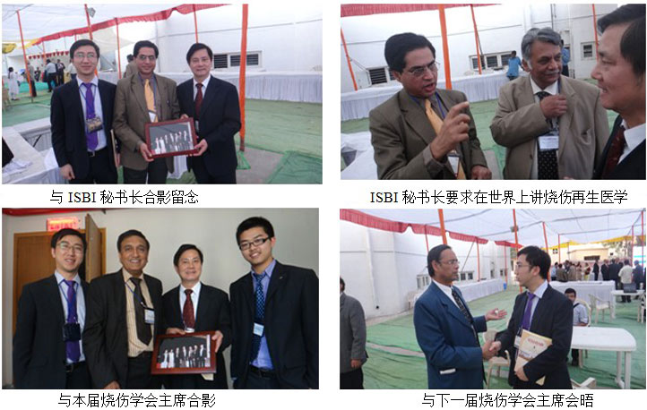 隨后,在張印的帶領(lǐng)下,美寶團(tuán)隊(duì)將的具有特殊意義的禮物-贈(zèng)送給了ISBI秘書長Rajeev Ahuja教授和大會(huì)主席Umesh Sha教授,他們被這份友誼深深的感動(dòng)了。ISBI秘書長激動(dòng)的說:“你們今天的演講很精彩,但是你們講力度太小了。讓我講,這項(xiàng)技術(shù)在全世界都會(huì)火起來的?!焙淌谡f:“這項(xiàng)技術(shù)是造福全人類的技術(shù),希望ISBI組織能夠大力推廣,為全人類燒傷患者造福?!庇《葻齻麑W(xué)會(huì)主席Umesh Shah 教授緊握著美寶團(tuán)隊(duì)成員的手說:“你們太細(xì)心,太讓我感動(dòng)了, 我有機(jī)會(huì)一定去北京拜訪你們,并向你們學(xué)習(xí)” 期間,下一屆印度燒傷學(xué)會(huì)主席亞洲最大燒傷中心Safdarjang 燒傷中心主任R.P.Narayan教授前來對(duì)胡教授的演講給予高度贊揚(yáng)并邀請(qǐng)美寶團(tuán)隊(duì)2014年來新德里參加22屆印度國家燒傷年會(huì),并將全力配合美寶團(tuán)隊(duì)的工作。