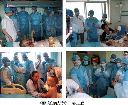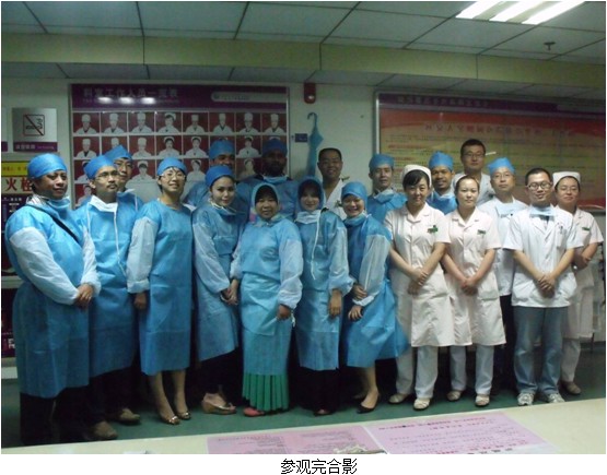 6月19日上午9點,15位醫(yī)生被分成兩組,分別由舒葉主任和張美艷帶領(lǐng)參觀延安大學(xué)附屬醫(yī)院燒傷整形科病房??剖业睦钪魅魏蜅钪魅螌碓L客人分別進行引導(dǎo)和講解,學(xué)習(xí)了大面積燒傷的治療,規(guī)范化的換藥,暴露療法,半暴露,及包扎療法的應(yīng)用,微粒皮種植技術(shù)的展示。參觀中,醫(yī)生們對換藥頻率,止疼藥及抗生素的使用,細菌培養(yǎng),療法適應(yīng)癥,見效的時間,疤痕防治,疤痕膏導(dǎo)入儀,按摩手法等都表示出了極大的興趣,兩位主任也詳細介紹了從急救,補液到防疤治療等局部到系統(tǒng)治療的具體事宜。幾位大面積燒傷患者的高質(zhì)量的創(chuàng)面愈合讓馬來醫(yī)生們感到欣慰和感嘆。應(yīng)醫(yī)生們的要求,院方安排了骨科病房的參觀,醫(yī)生們學(xué)習(xí)了再生技術(shù)在骨科領(lǐng)域的應(yīng)用,讓幾位骨科醫(yī)生興奮不已。