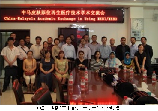 6月19日下午,馬來西亞醫(yī)生們與延安大學(xué)附屬醫(yī)院的醫(yī)務(wù)人員進行了學(xué)術(shù)交流。交流安排了三場再生醫(yī)學(xué)演講,分別由延大附屬醫(yī)院燒傷的李主任和楊主任以及來自馬來西亞的創(chuàng)面治療專家諾亞醫(yī)生。他們互相介紹了自己所在的醫(yī)院,以及再生技術(shù)的應(yīng)用,彼此做了再生醫(yī)學(xué)應(yīng)用方面的報告。其中,延大醫(yī)院的李主任講了再生技術(shù)在大面積燒傷,外傷,潰瘍及其它創(chuàng)面中的應(yīng)用;楊主任講解了微粒皮種植技術(shù)的規(guī)范操作,適應(yīng)癥,臨床優(yōu)勢等等。馬來西亞的諾亞醫(yī)生講解了再生技術(shù)在糖尿病潰瘍,蛇咬傷,靜脈潰瘍,及褥瘡方面的應(yīng)用。雙方醫(yī)務(wù)人員對交流會感到非常滿意,受益頗深。在隨后的答疑階段,馬來西亞的醫(yī)生們爭相提問,詢問各種創(chuàng)面的治療,并咨詢了相關(guān)的基礎(chǔ)研究,并要求會后繼續(xù)深入交流!