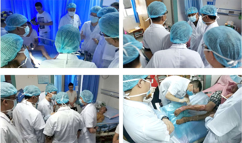 9月5日上午,專家們再次在病房查看昨天多例病患的技術(shù)操作,結(jié)合之前學(xué)術(shù)交流中存在的疑問,進行了進一步的探討。