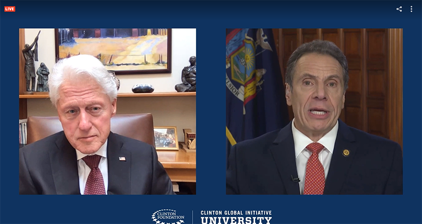 2020年美東時間4月18日中午12點,克林頓全球倡議大學(xué)(CGIU)虛擬年會召開。眾多來自政府機構(gòu)、非政府組織、知名企業(yè)的領(lǐng)導(dǎo)者及特定議題的專家學(xué)者和知名院校的學(xué)生領(lǐng)袖、院校代表在線參加了此次年會。