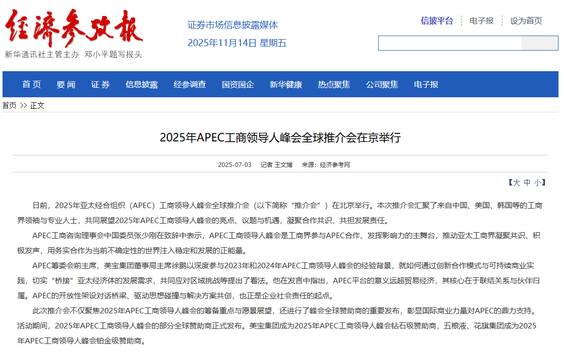 經(jīng)濟參考網(wǎng):2025年APEC工商領(lǐng)導人峰會全球推介會在京舉行