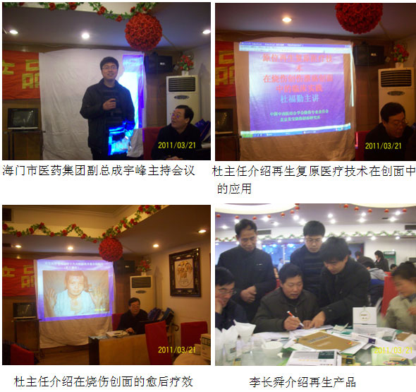 2011年3月21日,中國中西醫(yī)結(jié)合學(xué)會燒傷專業(yè)委員會常委、北京美寶燒傷創(chuàng)瘍研究所臨床部杜福勤主任和江蘇辦事處李長舜同志冒著春天的細(xì)雨參加由海門市醫(yī)藥集團(tuán)有限公司舉辦的海門市基層醫(yī)療單位技術(shù)與產(chǎn)品推介會,會議由海門市醫(yī)藥集團(tuán)副總成宇峰主持,他介紹了山東魯抗醫(yī)藥集團(tuán)和美寶國際醫(yī)藥集團(tuán)等20余家參會代表和參會產(chǎn)品。參加會議的還有來自海門市基層醫(yī)院和衛(wèi)生服務(wù)中心的主任和醫(yī)護(hù)人員共70余人。