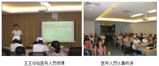 2011年10月17日,中國中西醫(yī)結(jié)合學(xué)會(huì)燒傷專業(yè)委員會(huì)常委兼秘書、《中國燒傷創(chuàng)瘍雜志》副總編輯、北京美寶燒傷創(chuàng)瘍研究所副所長、第二臨床研究部主任王洪生研究員應(yīng)邀到該院神經(jīng)外科做“再生復(fù)原療法對難愈性創(chuàng)面的治療新進(jìn)展”臨床專題學(xué)術(shù)講座,該科三個(gè)病區(qū)的護(hù)士長及全體護(hù)理人員參加了學(xué)術(shù)講座,在學(xué)術(shù)講座中,王主任對各種難愈性創(chuàng)傷、潰瘍創(chuàng)面的規(guī)范處理方法與技巧利用多媒體教學(xué)方式,結(jié)合大量的圖片及錄像資料進(jìn)行了詳細(xì)講解。