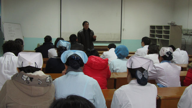 在醫(yī)院四樓多媒體會(huì)議室,首先胡棟材教授代表北京美寶國(guó)際集團(tuán)總部向全院職工帶來(lái)新春的問(wèn)候,并進(jìn)行了預(yù)防和疤痕治療及無(wú)菌病房管理的培訓(xùn)課程,在課后和醫(yī)生護(hù)士零距離交流,同時(shí)重點(diǎn)耐心的解答了臨床醫(yī)生在平日工作中遇到的臨床治療難題,并且對(duì)創(chuàng)瘍科病人及燒傷科門診疑難病人進(jìn)行會(huì)診,給予了正確的治療意見以及做了規(guī)范操作換藥,最后胡棟材教授鼓勵(lì)大家發(fā)揮出自己的能量,去發(fā)展我們的原位再生技術(shù)事業(yè),讓醫(yī)院快速并健康的發(fā)展,早日把開封美寶燒傷創(chuàng)瘍空分醫(yī)院打造成全國(guó)一流的再生醫(yī)療技術(shù)的教學(xué)臨床基地,培養(yǎng)更多從事再生技術(shù)的醫(yī)務(wù)人員,服務(wù)更多的患者,使越來(lái)越多的人了解“美寶”了解“原位再生技術(shù)”讓新的科學(xué)惠及百姓造福人類。