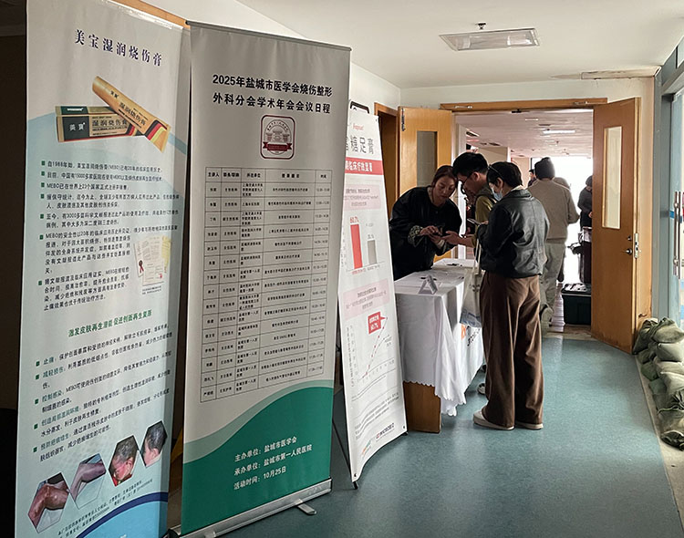 2025年10月25日,鹽城市醫(yī)學(xué)會(huì)燒傷整形外科年會(huì)在鹽城市第一人民醫(yī)院召開。會(huì)議邀請(qǐng)省內(nèi)外專家參與授課和討論,全市各縣區(qū)近40人參加。會(huì)議內(nèi)容涉及燒傷整形以及慢性創(chuàng)面愈合等議題。美寶集團(tuán)公司江蘇省區(qū)鹽城市區(qū)域代表參會(huì)并進(jìn)行了宣傳工作。