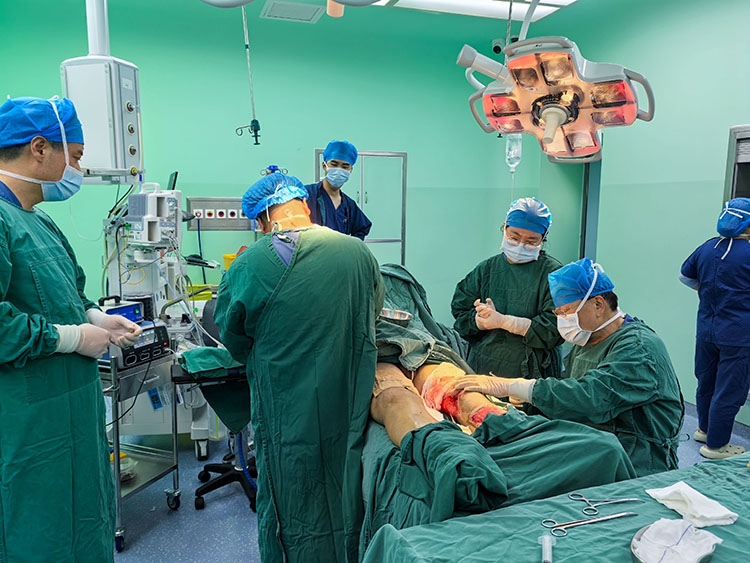 11月11日,北京榮祥再生醫(yī)學(xué)研究所研究員、《中國燒傷創(chuàng)瘍雜志》常務(wù)編委、燒傷創(chuàng)瘍再生醫(yī)療技術(shù)臨床專家趙瑞慶教授,到長治市人民醫(yī)院會診手術(shù)創(chuàng)傷患者。長治某洗煤廠裝載機車禍雙下肢嚴(yán)重碾軋傷患者,經(jīng)過積極的抗感染、創(chuàng)面通過再生醫(yī)療技術(shù)聯(lián)合多技術(shù)處理準(zhǔn)備,達到手術(shù)要求,趙瑞慶教授會同當(dāng)?shù)蒯t(yī)務(wù)人員李學(xué)雷主任團隊等,在全麻下行“雙下肢嚴(yán)重皮膚缺損創(chuàng)面修復(fù)手術(shù)”術(shù)中順利,出血不多,病人安返病區(qū)。術(shù)后又制定了嚴(yán)格的治療措施。
