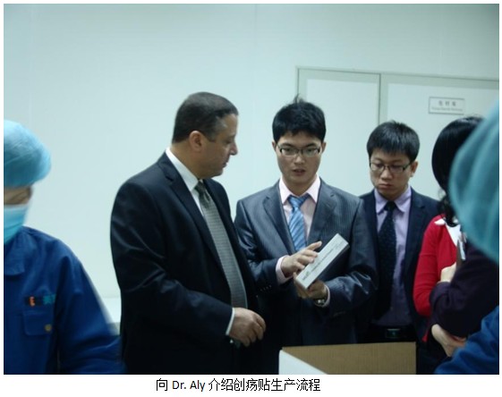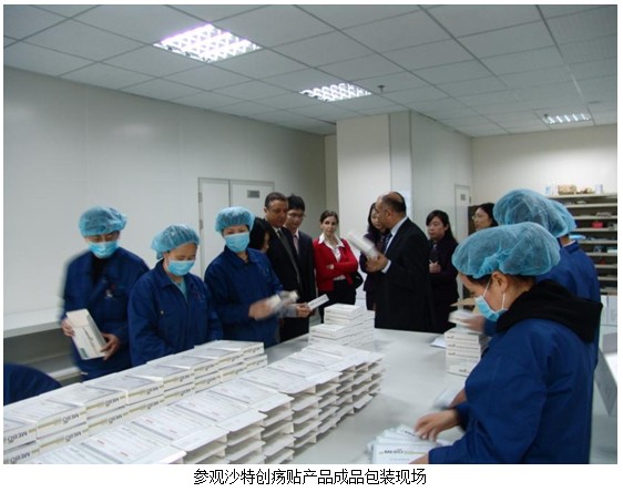 之后Dr.Ayman一行在商總和孫總的陪同下,一同參觀了新的廠房設(shè)備,并查看目前正在做最后包裝程序的發(fā)往沙特的創(chuàng)瘍貼產(chǎn)品。Dr.Ayman信心滿滿地說:“未來我們將勢(shì)必打造美寶品牌的多產(chǎn)品體系,將快速大力拓展醫(yī)療器械類產(chǎn)品在中東、非洲、南美洲的深入合作和市場(chǎng)營(yíng)銷,努力將美寶創(chuàng)瘍貼、美寶疤痕軟膏打造成為第二、第三個(gè)濕潤(rùn)燒傷膏!”