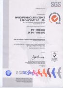 上海美寶獲ISO13485國際質(zhì)量管理體系證書