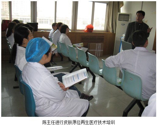 由安醫(yī)院是安陽市一個??漆t(yī)院,共設(shè)有病床65張,院長朱志廣對皮膚原位再生醫(yī)療技術(shù)非常認(rèn)可,2011年曾兩次邀請陳主任來院辦班,在臨床取得很大的成績,同時也給醫(yī)院增加了效益。此次應(yīng)邀三臨該院,住院部主任劉紀(jì)把治療的典型病例給陳主任觀看,并希望陳主任會診并講課,進(jìn)行第三次培訓(xùn)。
