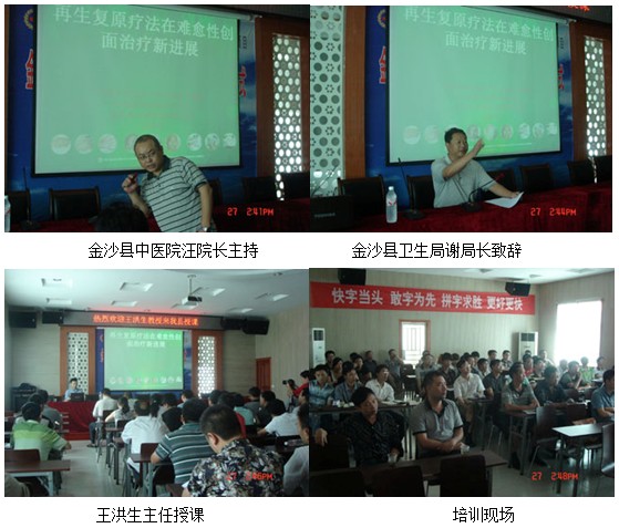 2012年7月27日,應(yīng)金沙縣中醫(yī)院邀請,由金沙縣衛(wèi)生局主辦,金沙縣中醫(yī)院協(xié)辦的金沙縣再生醫(yī)療培訓(xùn)班在金沙縣衛(wèi)生局會議廳舉辦,此次培訓(xùn)邀請中國中西醫(yī)結(jié)合學(xué)會燒傷專業(yè)委員會常委兼秘書、《中國燒傷創(chuàng)瘍雜志》副總編輯、北京美寶燒傷創(chuàng)瘍研究所副所長、第二臨床研究部主任王洪生研究員來到該院,對該院醫(yī)護(hù)人員進(jìn)行了再生復(fù)原療法在深度燒傷及難愈性創(chuàng)面治療新進(jìn)展的規(guī)范性培訓(xùn)及學(xué)術(shù)交流。