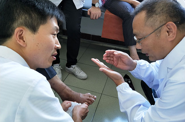 7月21日至23日,應(yīng)文水縣人民醫(yī)院的邀請(qǐng),中國(guó)中西醫(yī)結(jié)合學(xué)會(huì)燒傷專業(yè)委員會(huì)專家趙瑞慶,來到劉胡蘭的家鄉(xiāng),深入外科、腎內(nèi)科會(huì)診多例嚴(yán)重糖尿病足及慢性潰瘍創(chuàng)面病人,通過在手術(shù)室對(duì)醫(yī)生的言傳身教,使大家對(duì)相關(guān)病例的處理水平有了進(jìn)一步提高,手術(shù)后開展了多科室人員的再生醫(yī)療技術(shù)培訓(xùn),受到院領(lǐng)導(dǎo)及腎內(nèi)科、外科、骨科主任的充分肯定,此次活動(dòng)推動(dòng)了再生醫(yī)療技術(shù)在文水縣醫(yī)療集團(tuán)的廣泛應(yīng)用。