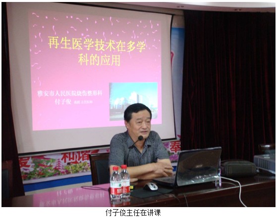 2012年7月18日下午,應(yīng)醫(yī)院的邀請,中國中西醫(yī)結(jié)合學(xué)會燒傷專業(yè)委員會主任委員、雅安市人民醫(yī)院燒傷科主任付子俊來到該院,舉辦國家級繼續(xù)教育項(xiàng)目《中西醫(yī)結(jié)合創(chuàng)面治療新進(jìn)展》學(xué)習(xí)班,峨眉山市的29家醫(yī)療單位共計(jì)100多位學(xué)員到場接受繼續(xù)再教育。會議由醫(yī)院科教科科長陳元主持,并就再生醫(yī)療技術(shù)做了簡單的介紹,隨后,付主任開始正式授課,付主任深入淺出的以理論知識為切入點(diǎn),通過大量科室應(yīng)用效果的病例展示圖文并茂的為在場的學(xué)員講解再生醫(yī)療技術(shù),并重點(diǎn)講述了再生醫(yī)療技術(shù)應(yīng)用的原則和要點(diǎn)。此次講座全程近3個(gè)小時(shí),會議全場始終保持安靜,學(xué)員聽得津津有味。授課結(jié)束后,還進(jìn)行了學(xué)員提問,付主任也一一做了詳細(xì)的解答。
