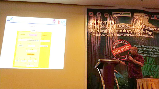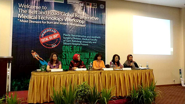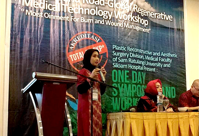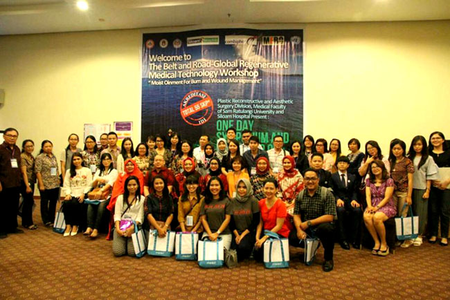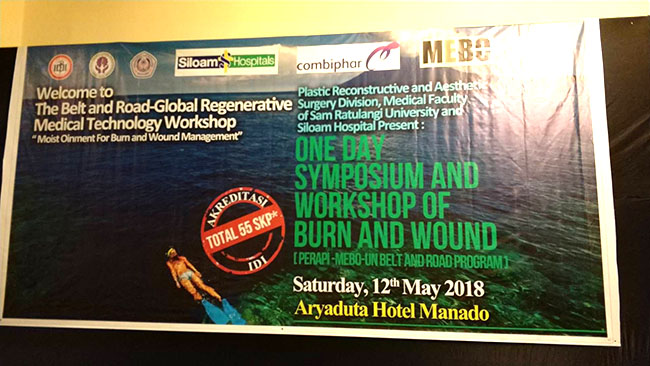 5月12日,由美寶和Combiphar主辦的第一期大型再生醫(yī)學(xué)培訓(xùn)班在印度尼西亞美娜多市成功舉辦。來自雅加達(dá)Koja整形醫(yī)院、Pelni/Rawamangun/Poli等醫(yī)院燒傷創(chuàng)瘍科、兒童醫(yī)院、武警醫(yī)院的8名再生醫(yī)學(xué)專家和美娜多當(dāng)?shù)豐iloam醫(yī)院、周邊地區(qū)社區(qū)醫(yī)院、當(dāng)?shù)孛襟w等共255人參加了本次活動,詳細(xì)報(bào)道如下: