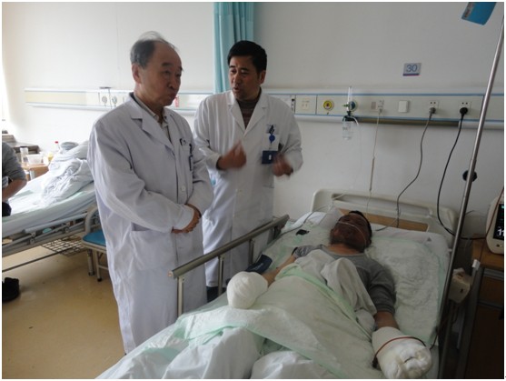 張家港市燒傷創(chuàng)瘍治療基地揭牌儀式之后,中國中西醫(yī)結(jié)合學會燒傷專業(yè)委員會主任委員肖摩教授、趙瑞慶教授應邀到燒傷科參觀指導工作。聽取錢明元主任的介紹,特別是應用再生醫(yī)療技術(shù)治療殘余創(chuàng)面和疤痕等方面的經(jīng)驗。并對住院的燒傷患者進行了會診和病例分析討論。