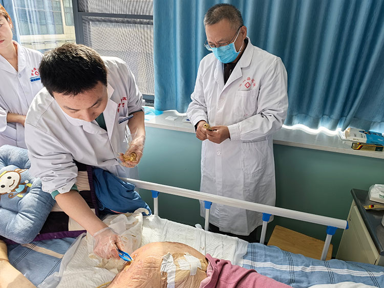 2025年10月15日,《中國燒傷創(chuàng)瘍雜志》總編、北京市中西醫(yī)結(jié)合學(xué)會燒傷專業(yè)委員會副主任委員方進(jìn)勇,來到商洛市中醫(yī)醫(yī)院會診難愈創(chuàng)面病人,科室張文濤主任及科醫(yī)生、護(hù)士長參加。