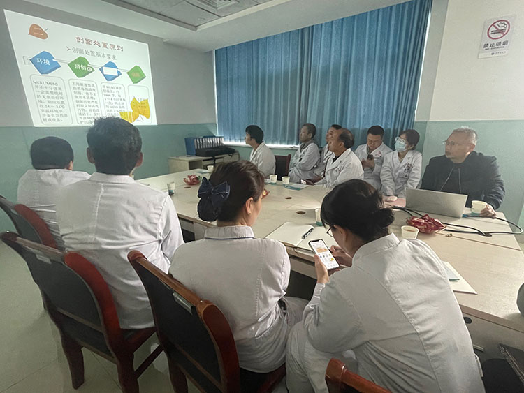 2025年10月15日,《中國燒傷創(chuàng)瘍雜志》總編、北京市中西醫(yī)結(jié)合學(xué)會燒傷專業(yè)委員會副主任委員方進(jìn)勇,到丹鳳縣醫(yī)院進(jìn)行科室培訓(xùn),普外科,骨科主任,護(hù)理部主任,護(hù)士長,醫(yī)生參加培訓(xùn)。