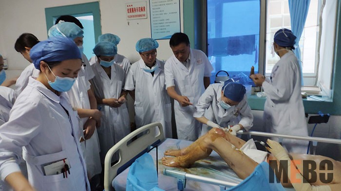 7月17日,受商丘市睢陽區(qū)中心醫(yī)院邀請,中國中西醫(yī)結(jié)合學會燒傷專業(yè)委員會委員、燒傷創(chuàng)瘍再生醫(yī)療技術資深專家、河南大學第一附屬醫(yī)院燒傷科主任醫(yī)師李繼洋教授到院會診,指導一例大面積重度燒傷患者的治療?;颊吣杲攀?,燒傷面積30%以上,大部分為深二度和三度燒傷。李繼洋教授翻閱病人病例,聽取病人目前情況,觀察患者頭面部、雙上肢及后背的燒傷創(chuàng)面,高度評價抗休克治療,肯定了馬文博主任帶領的外科團隊運用原位再生醫(yī)療技術(MEBT/MEBO)在該病例的規(guī)范治療取得的階段性成就,然后示范指導各燒傷部位創(chuàng)面耕耘、薄化的操作技巧,并對壞死組織給出了分期分批處理的意見。通過本次會診活動,商丘市睢陽區(qū)中心醫(yī)院綜合外科掌握了更多大面積重度燒傷患者的治療知識,為更好運用原位再生醫(yī)療技術救治商丘市區(qū)及周邊燒傷患者積累了更多的寶貴實戰(zhàn)經(jīng)驗。