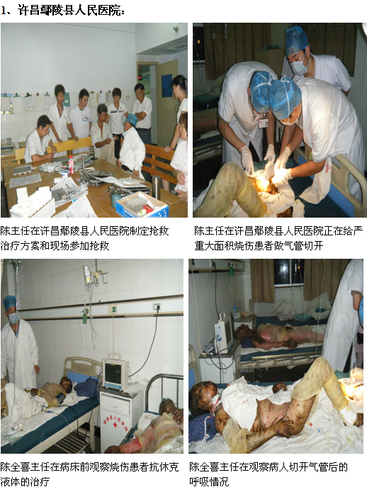 赤日炎炎似火燒,夏伏盛日溫度高。2010年7月11日至28日,中國(guó)中西醫(yī)結(jié)合燒傷專業(yè)委員會(huì)委員,全國(guó)特重病人搶救組專家,皮膚原位再生醫(yī)療技術(shù)推廣專家陳全喜主任別對(duì)河南省鄢陵縣人民醫(yī)院、河南省鶴壁市第二人民醫(yī)院、河南省滑縣第三人民醫(yī)院河南省許昌市地鐵骨科醫(yī)院的燒傷科進(jìn)行了會(huì)診,其中比較典型的病例如下:1、河南省鄢陵縣人民醫(yī)院2名火燒傷患者,燒傷面積均為96%TBSA以上的特重度燒傷患者;2、河南省鶴壁市第二人民醫(yī)院患者楊某,男,22歲,熱水泥燒傷,總燒傷面積為67%TBSA,均Ⅲ度燒傷創(chuàng)面;3、河南省滑縣第三人民醫(yī)院患者郭某,女,54歲,熱液燙傷,燒傷總面積為68%TBSA,雙下肢均為深Ⅲ度燒傷創(chuàng)面(肌腱外漏);4、河南省許昌市地鐵骨科醫(yī)院張某,男,38歲,外傷引發(fā)骨髓炎,住院已9個(gè)月,病情進(jìn)一步惡化。