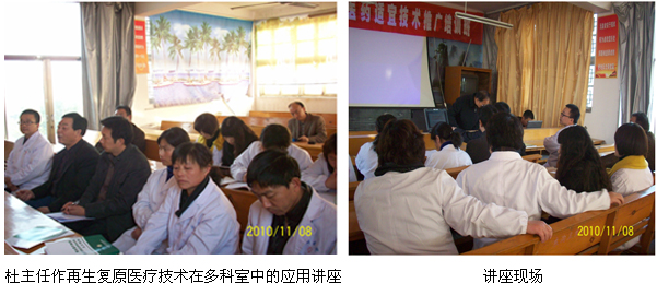 2010年11月8日下午15:00,中國中西醫(yī)結(jié)合學(xué)會(huì)燒傷專業(yè)委員會(huì)常委、北京美寶燒傷創(chuàng)瘍研究所臨床部研究員杜福勤教授和學(xué)會(huì)駐江蘇省蘇北區(qū)辦事處劉恒主任應(yīng)阜寧縣東溝鎮(zhèn)中心醫(yī)院周建峰院長的邀請,為該院外科、肛腸科、婦產(chǎn)科、皮膚科等科室的主任、醫(yī)護(hù)人員20余人作了“再生復(fù)原醫(yī)療技術(shù)在多科室應(yīng)用的學(xué)術(shù)講座”,該院外科陳為斌主任主持了講座,杜教授在授課中利用大量的臨床圖片資料向大家介紹了再生復(fù)原醫(yī)療技術(shù)在外科、骨科、肛腸科、婦產(chǎn)科、皮膚科中的適應(yīng)癥及治療方法和愈后效果。該院領(lǐng)導(dǎo)及與會(huì)人員對再生醫(yī)療技術(shù)良好的治療效果給予了肯定,并提出了在臨床應(yīng)用該項(xiàng)技術(shù)時(shí)所遇到的問題,得到了杜教授耐心地解答。