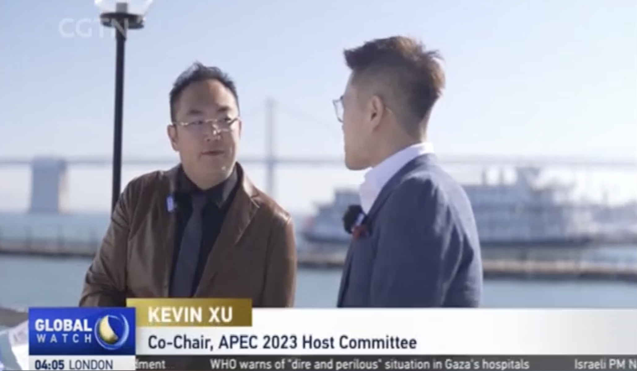 當?shù)貢r間11月12日,美寶集團董事局主席、灣區(qū)委員會APEC 工作組主席、APEC2023籌委會聯(lián)合主席徐鵬在位于舊金山9號碼頭的Klamath渡船上接受CGTN采訪。始建于1925年的歷史悠久的Klamath號渡船現(xiàn)已修繕完成并停泊在舊金山海濱,它現(xiàn)在是舊金山灣區(qū)委員會的總部。