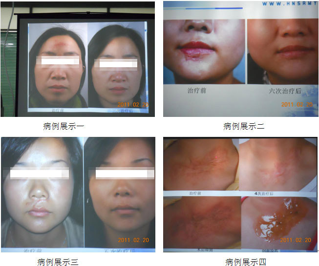 研討會首先由譚主任詳細(xì)系統(tǒng)的介紹了應(yīng)用皮膚原位再生復(fù)原技術(shù)對疤痕以及其它表皮缺損激光治療后的創(chuàng)面進(jìn)行修復(fù)的理論依據(jù)。隨后向與會領(lǐng)導(dǎo)展示了他們團(tuán)隊(duì)治療的若干實(shí)例,對每一幅照片的病例,譚主任都如數(shù)家珍,治療效果對比非常強(qiáng)烈。