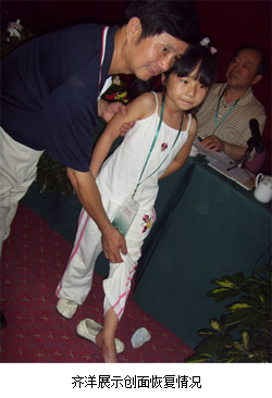 汶川地震的一名小患者,因下肢擠壓傷曾被診斷需要截肢治療,吳委員長得知后非常關(guān)心小患者的傷情,親自看望小患者,當?shù)弥』颊邏粝氘斠晃晃璧秆輪T時,囑咐醫(yī)務(wù)人員要盡量保住小患者的下肢,圓她做舞蹈家的一個夢想。經(jīng)用再生醫(yī)療技術(shù)治療后,保住了小患者的下肢,最終康復。