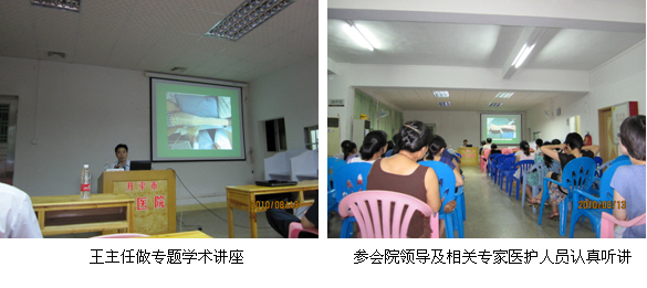 學術(shù)講座于2010年8月13日晚上7:30分在該院門診五樓會議室進行,該院醫(yī)務(wù)科李志騰科長全程主持了學術(shù)講座,該醫(yī)院副院長兼創(chuàng)傷外科主任陳祖彥、副院長向愛民、創(chuàng)傷外科副主任李康土等院領(lǐng)導及60余名相關(guān)科室的專家和醫(yī)護人員到會聆聽了學術(shù)講座,在專題學術(shù)講座中王主任結(jié)合了大量的臨床病例資料,主要針對各類難愈性創(chuàng)傷、潰瘍創(chuàng)面的規(guī)范化處理方法與技巧、注意事項等進行了細致地講解,通過本次學術(shù)講座,使該醫(yī)院的相關(guān)醫(yī)護人員加深了對再生復原療法在難愈性創(chuàng)瘍創(chuàng)面的臨床治療要點和技術(shù)操作規(guī)范的了解,為該院處理難愈性創(chuàng)面拓展了新的思路。