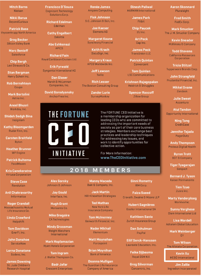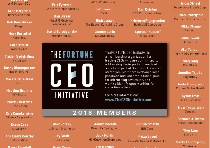 《財富》CEO倡議是《財富》雜志在2017年成立的組織,從財富500強中挑選出104位CEO商討商業(yè)組織如何通過共同合作在創(chuàng)造財富的同時使世界變得更好。這也是響應2016年教皇方濟各對財富500強的期望-其中的精英CEO、學者和慈善家們能夠合作為世界貧困問題提供解決策略來促進世界繁榮。
