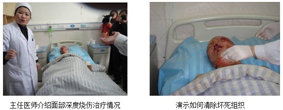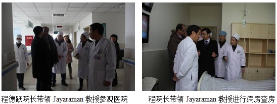 隨后,程院長帶領(lǐng)Jayaraman教授進行了病房查房活動。在查房的過程中,醫(yī)院主任醫(yī)師詳細介紹了應(yīng)用燒傷再生療法如何治療深度創(chuàng)面,包括開創(chuàng)引流、耕耘減張、壞死組織薄化、壞死組織液化排除等技術(shù),深深的吸引了Jayaraman教授。Jayaraman教授說:“我們的燒傷中心對于深二度以上的創(chuàng)面,一般都采用削痂植皮技術(shù),但今天我親眼看見了一種對壞死痂皮處理的一套新技術(shù)---創(chuàng)面無損傷、病人無痛苦、壞死組織自動液化排除, 好技術(shù)、好技術(shù)。”