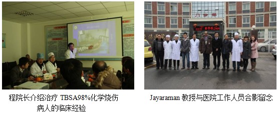 3月1日上午一大早,在四川分會辦公室主任邱衛(wèi)東的帶領(lǐng)下,前往什邡燒傷??漆t(yī)院進行參觀、學習燒傷再生醫(yī)學的臨床應(yīng)用情況,受到了什邡燒傷??漆t(yī)院程德躍院長的熱情歡迎和接待。什邡燒傷??漆t(yī)院是在燒傷再生醫(yī)學指導下發(fā)展起來的專業(yè)性醫(yī)院,該醫(yī)院運用皮膚原位再生療法,救治了無數(shù)燒傷、燙傷、皮膚潰瘍、慢性創(chuàng)面、褥瘡患者,特別是在應(yīng)用燒傷再生醫(yī)學救治大面積燒傷病人方面擁有了豐富的臨床經(jīng)驗。首先,程德躍院對Jayaraman教授的到來表示熱情的歡迎,親自帶領(lǐng)Jayaraman教授與相關(guān)醫(yī)院工作人員參觀醫(yī)院的基礎(chǔ)設(shè)施與科室建設(shè)。程院長高興地說:“我們醫(yī)院是在燒傷再生醫(yī)學指導下發(fā)展起來的燒傷??漆t(yī)院,沒有燒傷再生醫(yī)學的思想指導,也沒有我們醫(yī)院的今天?!?/FONT>
