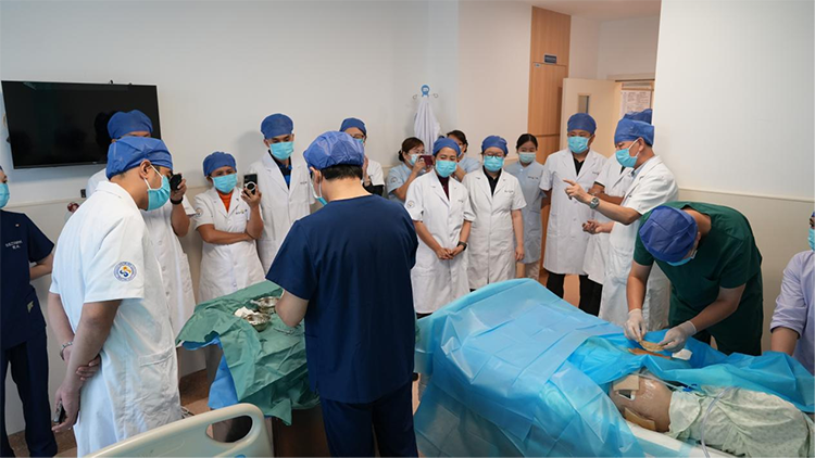 25日上午,代表團(tuán)再次前往病區(qū),觀摩了一例壓瘡患者的微粒皮種植操作。觀摩結(jié)束后,醫(yī)生們紛紛表示未來希望能夠有機(jī)會(huì)將微粒皮種植技術(shù)應(yīng)用到當(dāng)?shù)氐幕颊呔戎沃?。在隨后的學(xué)術(shù)分享環(huán)節(jié),代表團(tuán)也各自展示了其在臨床工作中的創(chuàng)面治療案例,現(xiàn)場(chǎng)互動(dòng)積極,學(xué)術(shù)氛圍熱烈。