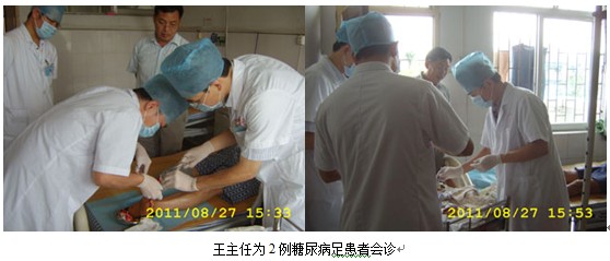 2011年8月27日下午三時,中國燒傷創(chuàng)瘍雜志副總編輯、中國中西醫(yī)結(jié)合學會燒傷專業(yè)委員會常委兼秘書、北京燒傷創(chuàng)瘍研究所副所長、臨床研究部主任王洪生研究員應(yīng)貴港市中醫(yī)院韋赤勇院長的邀請,在廣西田東縣人民醫(yī)院進行臨床學術(shù)交流后,王主任不辭辛苦從田東縣趕赴貴港市中醫(yī)醫(yī)院到為該院收治的2例糖尿病足病人會診,到達貴港市中醫(yī)醫(yī)院后,在韋赤勇院長陪同下,王主任深入該醫(yī)院創(chuàng)傷該科、燒傷創(chuàng)瘍科病區(qū),先后為2例糖尿病足患者會診,并親自為這2例病人做示范清創(chuàng)手術(shù),并在清創(chuàng)時講解糖尿病足創(chuàng)面處理要點,得到了該院韋院長、該科室主任楊柳明和主管醫(yī)生的高度認同。會診結(jié)束后,韋赤勇院長又與王主任就該院燒傷創(chuàng)瘍??平诤椭虚L期發(fā)展規(guī)劃進行了廣泛而深入的交流和溝通,韋院長表示一定要讓我國著名生命科學家、醫(yī)學家、人體再生復(fù)原科學的創(chuàng)立者徐榮祥教授創(chuàng)立的再生復(fù)原療法在該醫(yī)院開花結(jié)果,通過再生復(fù)原療法對糖尿病足等難愈性創(chuàng)面獨特的療效將該醫(yī)院的創(chuàng)傷外科、燒傷創(chuàng)瘍科打造成貴港市的優(yōu)勢、特色??疲詈箜f院長還表示將派一名醫(yī)生到國內(nèi)較為成熟的醫(yī)院去進修再生復(fù)原技術(shù),為打造難愈性創(chuàng)面優(yōu)勢專科盡快培養(yǎng)人才。