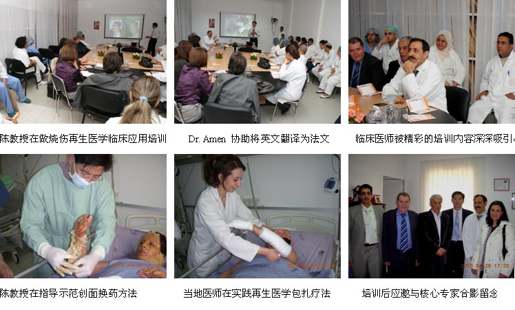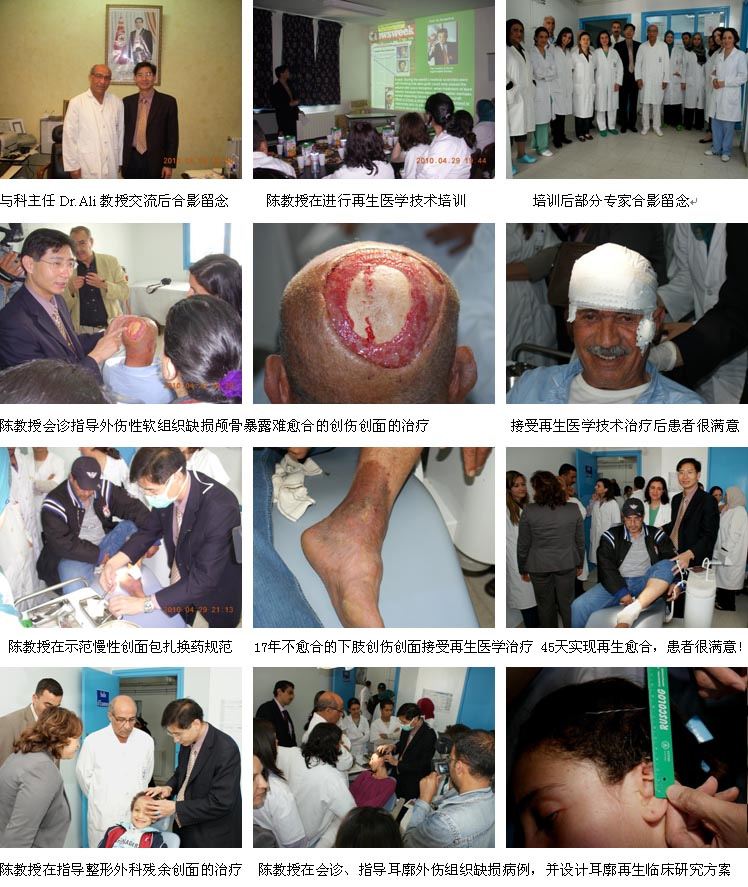應(yīng)突尼斯整形燒傷外科學(xué)會和多家醫(yī)院的邀請,中國燒傷創(chuàng)瘍科技中心臨床部主任、北京榮祥再生醫(yī)學(xué)研究所副所長、北京中西醫(yī)結(jié)合學(xué)會燒傷專業(yè)委員會副主任委員、中國燒傷創(chuàng)瘍雜志社副社長陳永翀教授于2010年4月26日至30日來到了地處非洲北部的突尼斯,參加了全國燒傷整形學(xué)術(shù)年會并到多家醫(yī)院進(jìn)行培訓(xùn)演講、學(xué)術(shù)交流、到燒傷中心示范指導(dǎo)燒傷創(chuàng)瘍病例的治療等,很受當(dāng)?shù)氐尼t(yī)師、護(hù)士和患者的歡迎。在短短的4天的時間里,成功參加了國家級學(xué)術(shù)交流會議并做主題演講,來自全國的燒傷、整形和創(chuàng)傷外科專家35人出席了會議,收到較好的學(xué)術(shù)推廣、規(guī)范臨床技術(shù)的效果;成功舉辦市級培訓(xùn)班1期,培訓(xùn)醫(yī)護(hù)人員50余名;舉辦院內(nèi)培訓(xùn)班2期,培訓(xùn)醫(yī)護(hù)人員40余名;培訓(xùn)經(jīng)銷商的醫(yī)療開發(fā)人員6名;會診、指導(dǎo)2例燒傷患者的治療和5名創(chuàng)瘍患者的治療。實現(xiàn)了較好的開發(fā)效果,現(xiàn)以圖片的方式做一個簡報。