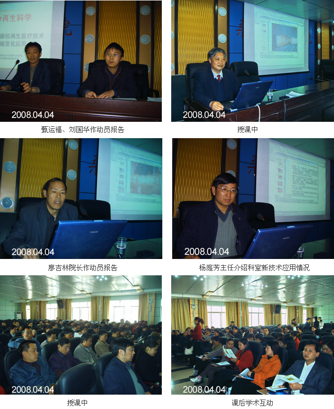 2008年4月4日下午2點(diǎn)30分,清明節(jié)放假的第一天,由張家界市桑植縣衛(wèi)生局、衛(wèi)生監(jiān)督所、桑植縣中醫(yī)院承辦的“燒傷醫(yī)學(xué)新進(jìn)展學(xué)習(xí)班”在桑植縣中醫(yī)院四樓會(huì)議室舉行。來(lái)自桑植縣人民醫(yī)院、桑植縣中醫(yī)院、桑植縣各鄉(xiāng)鎮(zhèn)醫(yī)生共300多人在這里參加了學(xué)習(xí)班。桑植縣人民衛(wèi)生監(jiān)督所所長(zhǎng)甄運(yùn)福、桑植縣衛(wèi)生局副局長(zhǎng)黃宏光、科長(zhǎng)劉國(guó)華、桑植縣人民醫(yī)院廖院長(zhǎng)、主持會(huì)議并發(fā)表了熱情洋溢的講話,他在講話中對(duì)與會(huì)的各位領(lǐng)導(dǎo)、專家和與會(huì)學(xué)員表示熱烈歡迎和衷心感謝,對(duì)我國(guó)著名生命科學(xué)家徐榮祥教授近年來(lái)在生命再生科學(xué)、人類組織器官克隆、燒傷再生醫(yī)學(xué)等領(lǐng)域所取得的重大臨床和實(shí)驗(yàn)研究成果給予了高度評(píng)價(jià),對(duì)能在百忙之中抽出時(shí)候來(lái)到山區(qū)給學(xué)員講課的金教授表示了萬(wàn)分的感謝。