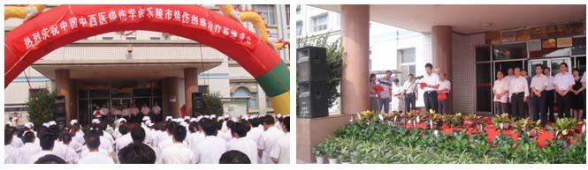 上午9時整,醫(yī)院門診大樓前喜氣洋洋,一派節(jié)日氣氛,醫(yī)院醫(yī)護人員整齊列隊和前來祝賀的各級醫(yī)療單位代表和各界和媒體記者歡聚一堂。掛牌儀式由樂陵市人民醫(yī)院高智亭院長主持,出席開幕式的領(lǐng)導(dǎo)有樂陵市孫大鵬市長,樂陵市衛(wèi)生局局長周曰強、中國中西醫(yī)結(jié)合學(xué)會燒傷專業(yè)委員會主任委員肖摩教授、泰山醫(yī)學(xué)院王廣順教授、樂陵市政協(xié)主席兼人民醫(yī)院馬院長和市直醫(yī)療機構(gòu)相關(guān)負(fù)責(zé)人,各鄉(xiāng)鎮(zhèn)衛(wèi)生院院長及技術(shù)骨干近200人參加了揭牌儀式。