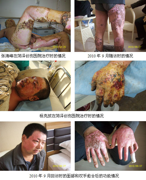 2010年9月26日~28日,中國(guó)中西醫(yī)結(jié)合學(xué)會(huì)燒傷專(zhuān)業(yè)委員會(huì)常委、北京美寶燒傷創(chuàng)瘍研究所臨床部主任杜福勤教授走訪了安徽阜陽(yáng)市臨泉縣在“2.6燒傷事件”中的楊克戰(zhàn)、張海峰2位受傷者,了解其出院后的愈后情況。