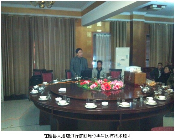 睢縣位于河南省商丘市西南角,是全國運動會水上比賽的場所,有著五湖相連風景大世界美稱。2012年11月4號,中國中西醫(yī)結(jié)合學會燒傷專業(yè)委員會委員、北京美寶燒傷創(chuàng)瘍研究所臨床部專家陳全喜和河南技術(shù)推廣人賀杰鋒應邀來到了睢縣公療醫(yī)院。燒傷科主任余  力及全科醫(yī)護人員在主任陳全喜的帶領(lǐng)下,認真學習“人體皮膚原位再生醫(yī)療技術(shù)”。