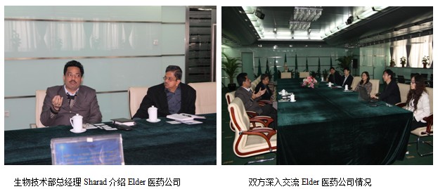 美寶國際集團(tuán)國際部與印度Elder醫(yī)藥公司一直保持著長期的交流,雙方一直希望可以達(dá)成合作。美寶國際集團(tuán)國際部市場人員在今年的三月初對Elder醫(yī)藥公司進(jìn)行了技術(shù)和商務(wù)訪問。隨后,Elder醫(yī)藥公司總經(jīng)理Alok Saxena迅速安排Elder醫(yī)藥公司生物技術(shù)部總經(jīng)理Sharad和(研發(fā))副總裁Sakhardande對美寶國際集團(tuán)進(jìn)行為期一天的技術(shù)和商務(wù)回訪,為下一步雙方的全面合作奠定了堅(jiān)實(shí)的基礎(chǔ)。