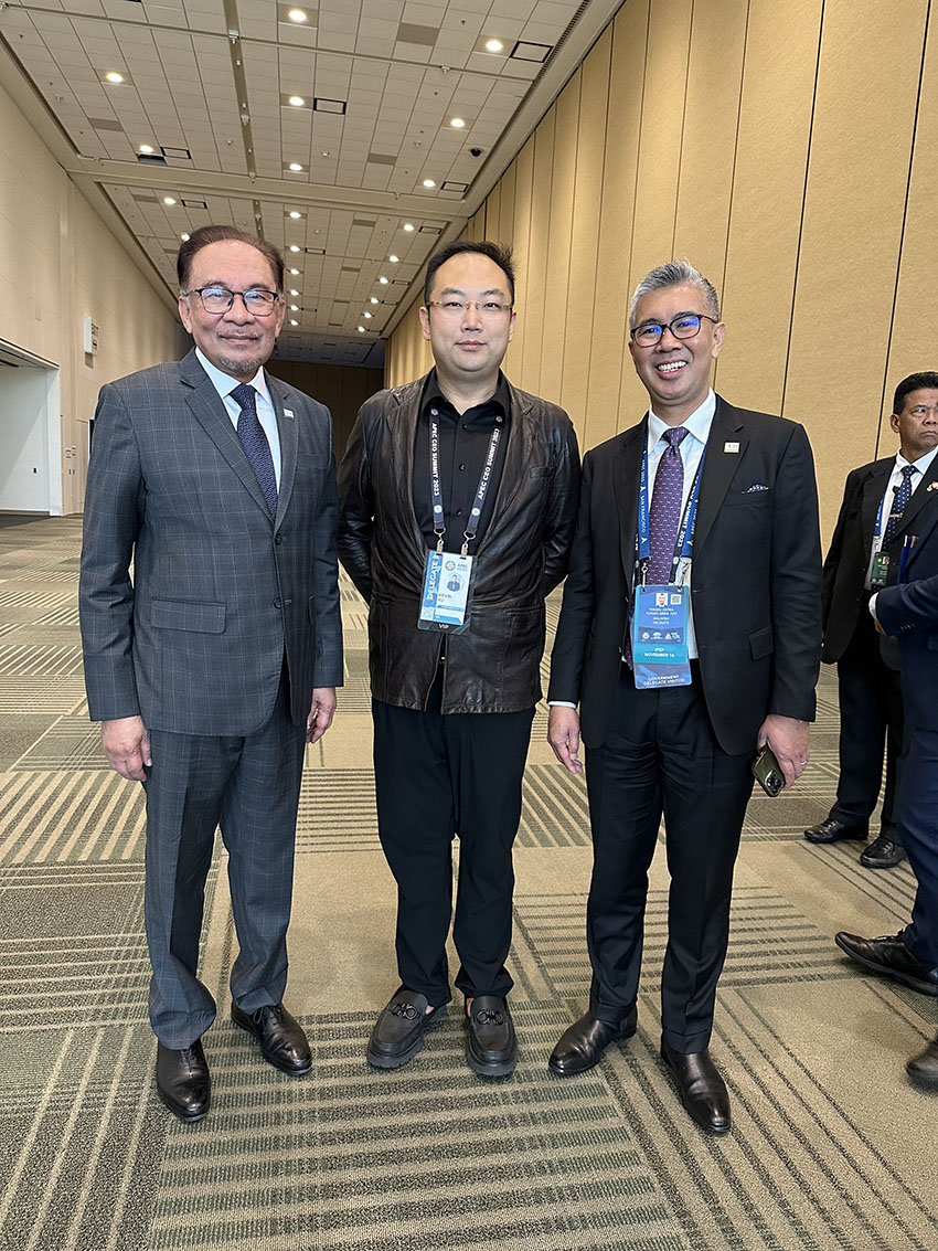 馬來西亞首相安華(左一)、APEC籌委會聯(lián)合主席徐鵬(中)、馬來西亞商務(wù)部長TENGKU ZAFRUL TENGKU ABDUL AZIZ(右一)