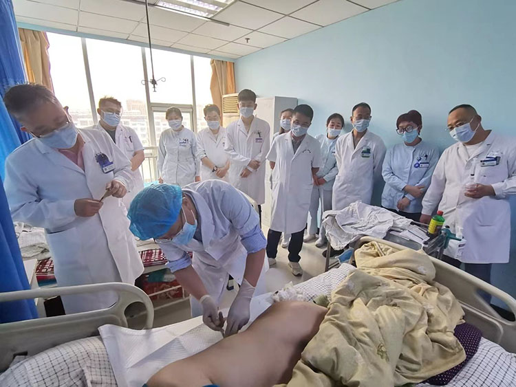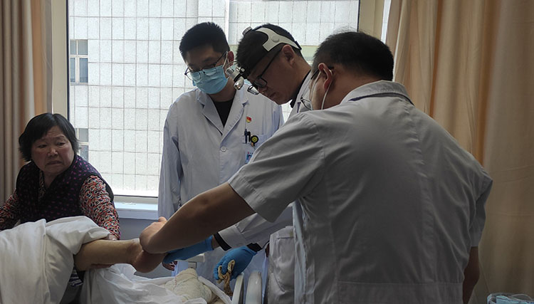 2024年5月15日,應(yīng)如皋市中醫(yī)院邀請,中國中西醫(yī)結(jié)合學(xué)會燒傷專業(yè)委員會委員、南通市第三人民醫(yī)院燒傷整形美容科孫記燕主任到該院會診了5例患者(下肢潰瘍1例、化膿性陰道炎1例、糖足潰瘍3例),仔細(xì)探查創(chuàng)面實(shí)際情況后,與科主任一起對2例糖足患者實(shí)施了手術(shù)。術(shù)后對幾例患者的今后治療進(jìn)行了商討,并制定了一套詳細(xì)的治療方案,著重強(qiáng)調(diào)了運(yùn)用再生醫(yī)療技術(shù)規(guī)范換藥的重要性,得到全體科室人員的十分肯定!